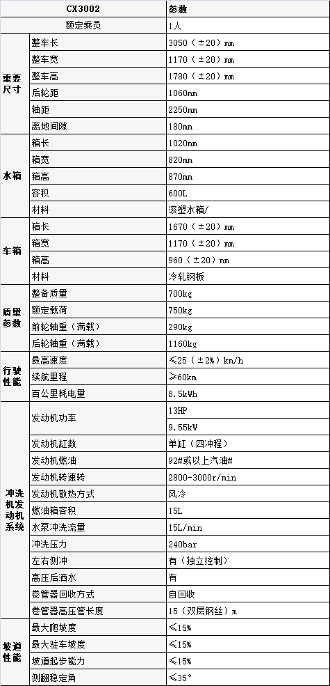 城秀三輪高壓沖洗車CX3002