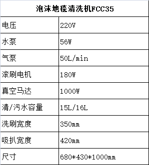 FCC35泡沫地毯清洗機(jī),制泡、滾刷、吸干三合一。快速干燥和一流的清潔性能,確保地毯可立即投入使用。配合C-4地毯高壓抽洗機(jī)做徹底清洗,能滿足持續(xù)地毯維護(hù)的需求,并持久提供美觀清潔的地毯。