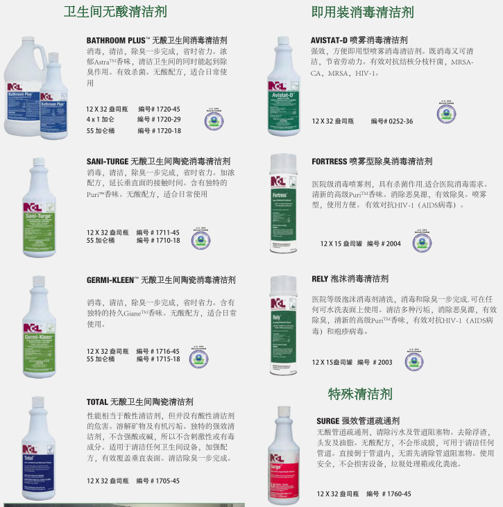干凈、衛生的衛生間反映了設施的整體清潔程度。NCL的衛生間清潔系統提供了最先進的清潔、消毒和除臭產品,以確保最大功效的控制衛生間環境中致病細菌。對于地板,墻壁,和其他表面,你也會找到一個更完整的程序。健康 經濟 的清洗方案可以選擇適合清潔人員使用的化學輸送系統。低成本的傳統包裝提供最大的靈活性。稀釋控制管理系統提供稀釋狀態下各種各樣的產品,以達到最佳效果。